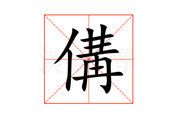 〔傋〕字拼音是 jiǎng gòu,部首是亻,总笔画是12画。